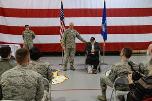 Feb. 12, 2018 War Hawks recognize World War II hero Gail Farrell, a 93-year old World War II and Korean War veteran who flew 21 missions as a tail gunner in the legendary B-17 Flying Fortress, was recognized for his service by Team War Hawks at the Offutt’s James M. McCoy Airman Leadership School Thursday, Feb. 8, 2018.