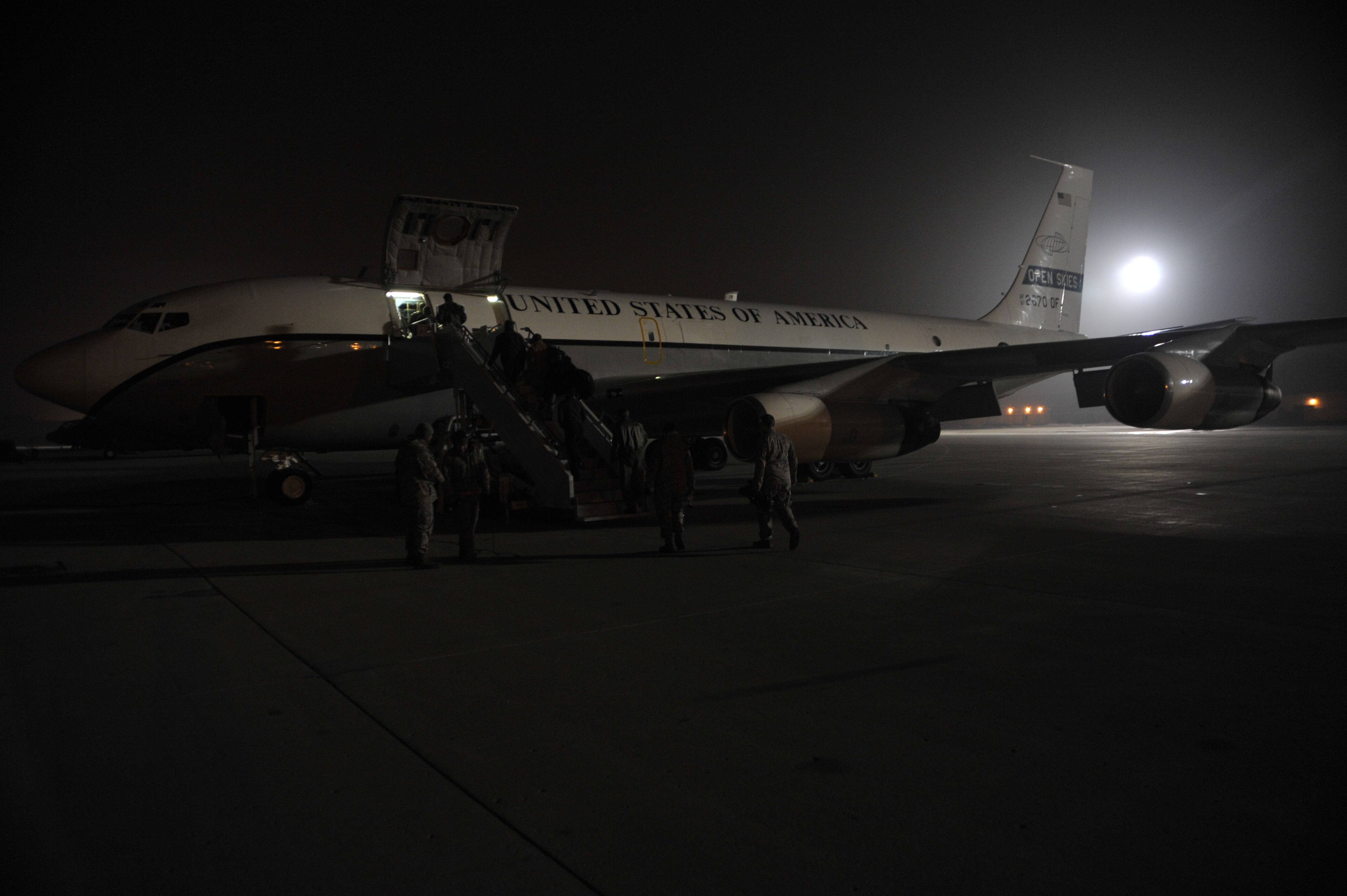 An OC-135B Observation Aircraft from the 45th Reconnaissance Squadron, at Offutt AFB, NE sits on the flight line Jan 16 at Wright-Patterson AFB, OH. The crew landed at Wright-Patterson to offload the 10,000 feet of film taken of Haiti to be developed and used to document the devastation caused after a 7.0 earthquake occured Jan. 12. (U.S. Air Force photo by Airman 1st Class Perry Aston) (Released)