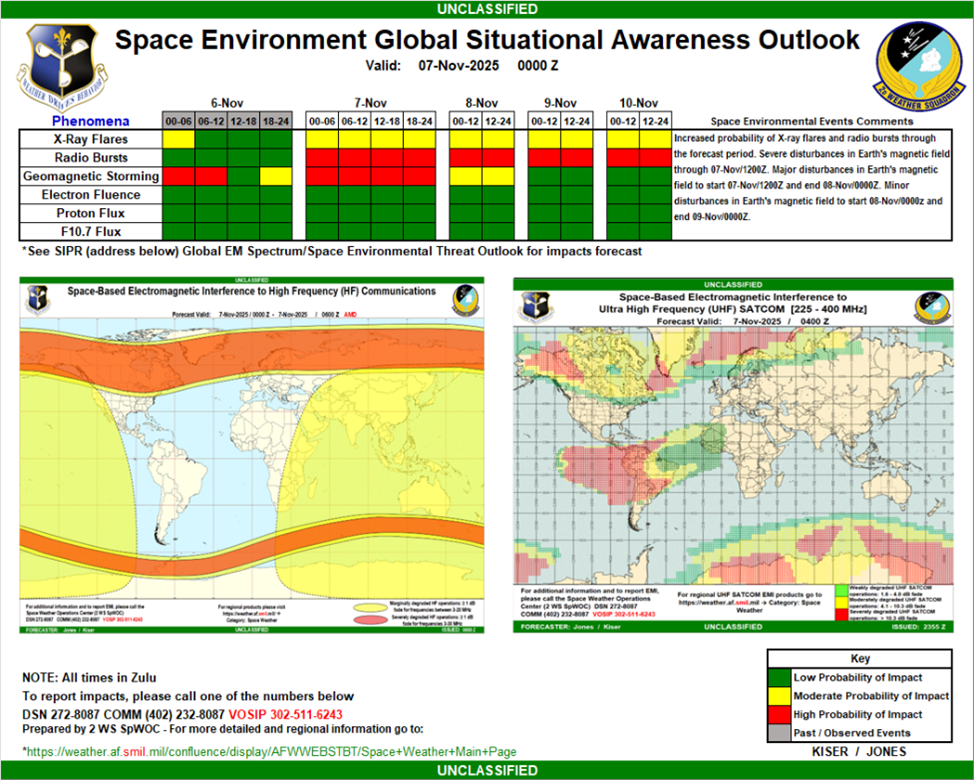 2d Weather Squadron, 557th Weather Wing delivers 24/7 Space Environment analysis and forecasting for the Department of War and Intelligence Community by forecasting the Sun’s activity to provide mission-tailored Electromagnetic Spectrum (EMS) signal health and propagation products supporting joint exercises, global military operations, and senior national defense decision makers.